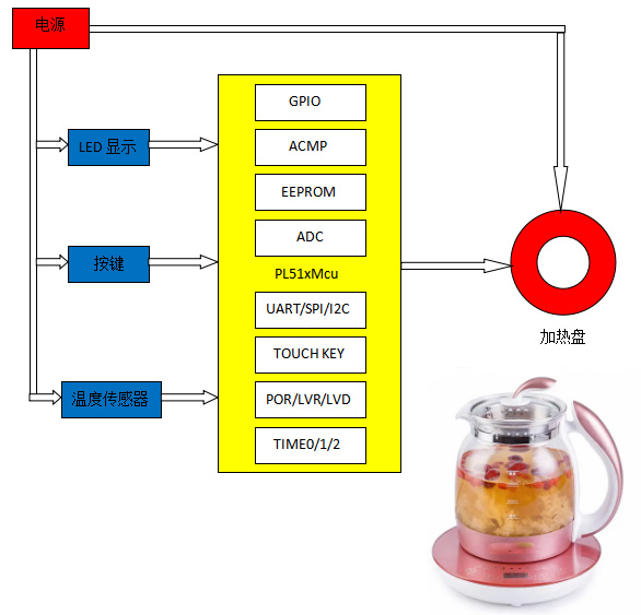随着人们生活水平的提高,喜欢养生的人越来越多,333体育微电子推出高性价比养生壶控制解决方案,方案具有温度、预约时间、烹饪功能任意选择、外围电路简洁等优点,提供完整解决方案。